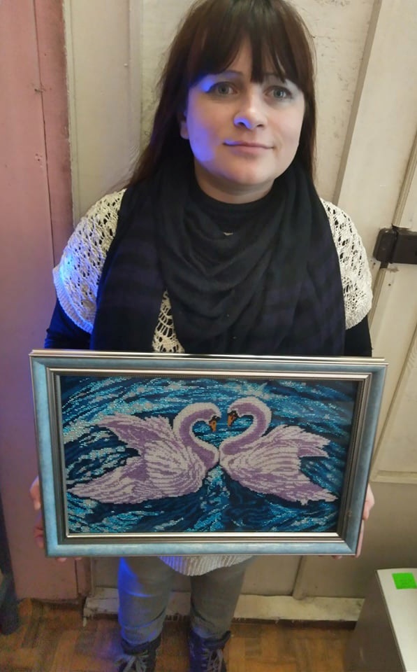 – Любов до вишивки мені передалася від моєї колишньої колеги Лариси Стецюк, з якою я працювала в лікарні, і яка час від часу хвалилася своїми вишитими картинами, – говорить вона. – А ось техніку вишивки хрестиком та бісером я опанувала завдяки інтернету. Першою моєю роботою була ікона Миколи Чудотворця. Її я подарувала своїй мамі на день народження. А народилася вона 19 грудня, тобто у день цього святого. Загалом вишивок я маю багато. Дуже дорого для них обходяться рамки. Тож обрамлюю свої вишиті картини перед продажем (продаю їх через «Барахолку» в інтернеті, що в соцмережі Фейсбук) або ж перед тим, як комусь подарувати. Зараз вишиваю картину "Осінь". За цим заняттям люблю слухати аудіозаписи електронних книжок. Неабиякою моєю розрадою ще є собака пекінес. Цю собачку ми купили завдяки тій же «Барахолці». Назвала її Маргоша, бо тоді саме слухала роман Булгакова "Майстер і Маргарита".