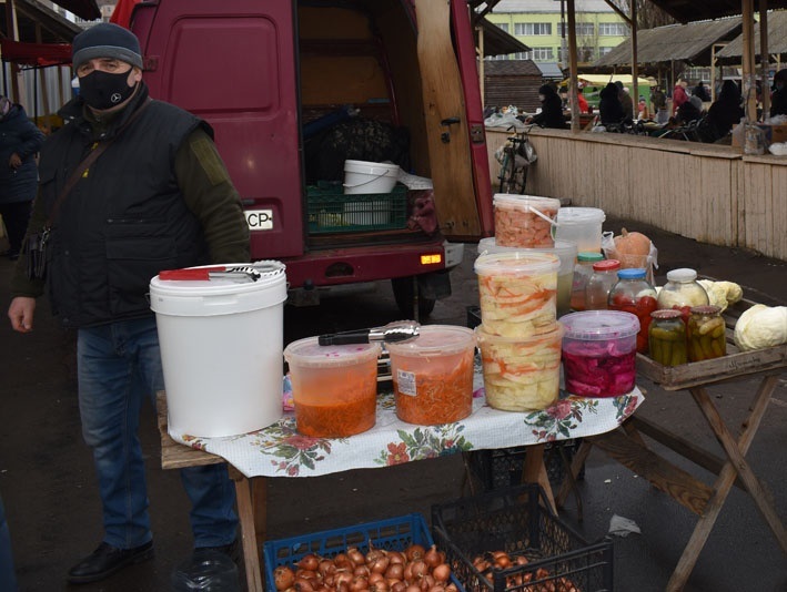 Біля прилавку із квашеними та маринованими овочами також помічалися скупчення людей. За кіло квашеної капусти тут просили 55-60 грн, а за стільки ж маринованих болгарських перців – 150 грн.
