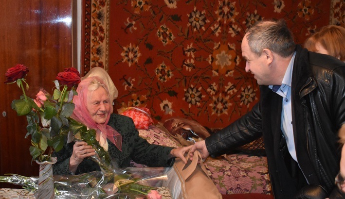– Сьогодні я дуже щаслива! – зізнається господиня дому. – Вже привітав мене й онук Денис, який живе в Австралії. Вітання телефоном передав і мій колишній сусід Володимир Базиленко, який нині живе в Кам’янці-Подільському. На вихідних обіцяв приїхати внук Ігор. Він зі своєю сім’єю живе в Києві. Окрім цих онуків, маю ще чотирьох. Є в мене ще п’ятеро правнуків та один праправнучок. Усім, хто надумає мене вітати, місця в хаті вистачить, нехай приходять, – щойно таке промовила Ольга Григорівна, як до її господи завітав начальник міського відділу освіти Петро Ярмоленко та директорка міської організації профспілки працівників освіти Анелія Ковальська. Вони подарували ювілярці по букету квітів, теплу ковдру та солодощі.