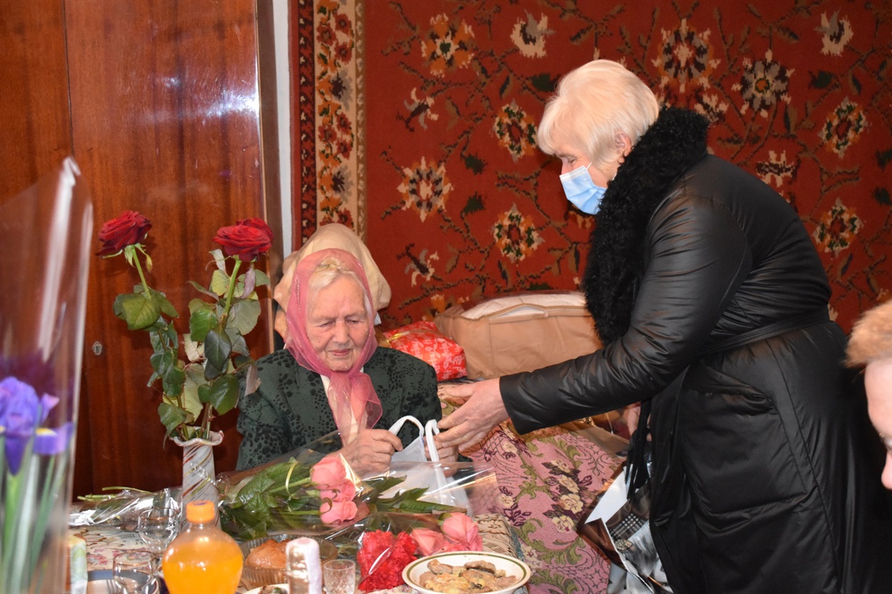 – Це дуже добре, що мама у такому поважному віці ще сама собі дає раду, – продовжує Наталія Замичкіна. – Адже я живу далеко від неї – на Запоріжжі. Перевідую її нечасто, бо дорога неблизька. Переїжджати до мене мама не хоче. Сьогодні сказала мені: "На цьому обійсті я живу вже 68 років, то й свого віку хочу тут дожити". Зараз маму обслуговує соціальний працівник Тетяна Козелецька. Ця жінка – добра і порядна: вчасно приносить мамі продукти і по господарству їй підсобляє. Ось і сьогодні допомогла накрити святковий стіл.