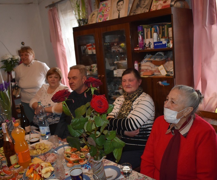 – І в мене про вас тільки хороші спогади, – зізнається за черговим тостом Галина Шкіра, 64 роки. – Кілька років тому я, як соціальний працівник, опікувалася вами. Зізнаюся по правді, у ваш дім я приходила мов до себе додому, так мені добре було з вами. Нехай Бог посилає вам гарне здоров’я.