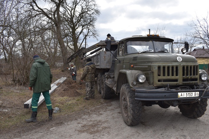 – Загалом ми маємо замінити п’ятнадцять стовпів та близько одного кілометра дефектного проводу, що значно покращить електропостачання споживачів, – зазначає майстер цієї бригади В’ячеслав Остапенко. – За два-три дні маємо впоратися. Впоралися б швидше, так ще обрізаємо гілля дерев, що ростуть поблизу ліній електропередач. Усі роботи виконуються коштом "Київобленерго".