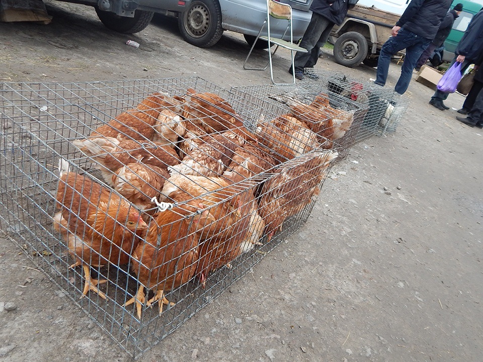 Трохи далі розгорнувся пташиний ринок. Асортимент неабиякий. Для прикладу, курча-бройлер коштувало 60 грн, качка-бройлер – 45, гуска породи «велика сіра» – 100 (усі тритижневого віку), 5-денна качка-мулард – 35. Поруч продавали 5-місячних курей породи «мелані браун» по 160 грн, продавець запевняв, що вони вже починають нестися.