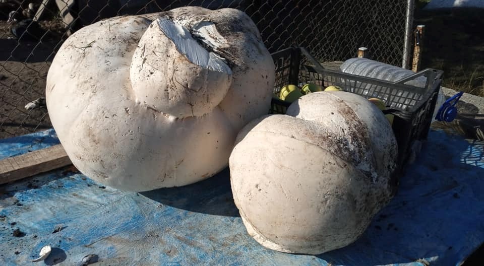 51-річна Ольга Онопрієнко на початку жовтня виставила на своїй сторінці у фейсбуці фото гігантських дощовиків. Ці гриби знайшов у місцевому саду її чоловік Віталій.