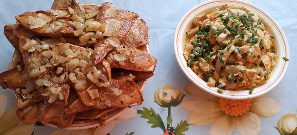 Із велетнів-дощовиків я приготувала шестилітровий казан бефстроганов у сметані, а Віталій насмажив "ковбасок" із цибулею. Ці страви я принесла до будинку культури (Ольга Іванівна працює директоркою Горбанівського БК – авт.) і пригостила ними своїх колег. Помітивши, як охоче смакувала ними й моя кума Тетяна Яременко, я дала пів дощовика їй. Страви з дощовиків полюбляють і мої вже дорослі діти – Олександра і Тарас.