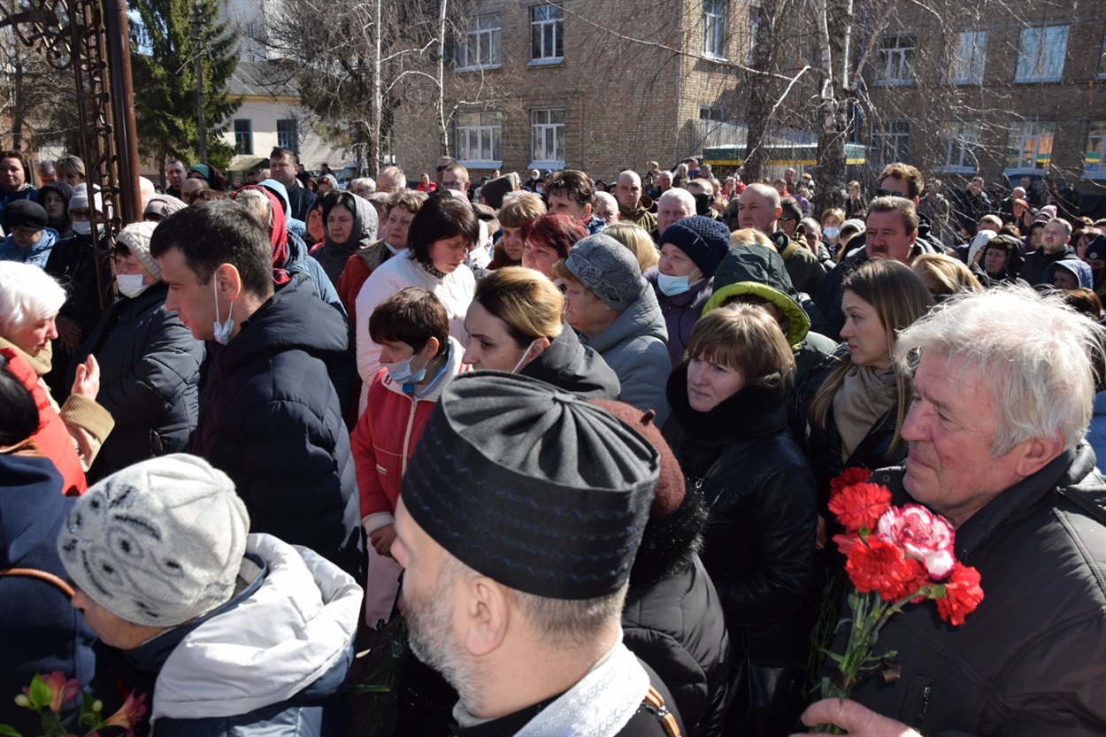 Попрощатися і провести Остапа Левчука в останню путь прийшли тисячі переяславців. На честь захисника пролунала пісня "Пливе кача" і всі присутні стали на коліна у знак пам’яті та шани до героя.