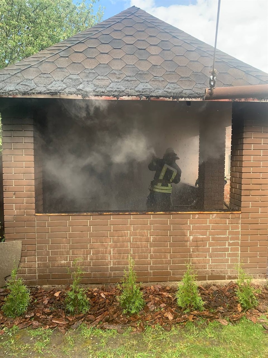 За результатами розвідки, вогонь охопив ондулінову крівлю альтанки на дерев'яній обрешітці, освітлення електричне. О 15:32 пожежу на площі 15 м. кв. було ліквідовано, потерпілих немає.