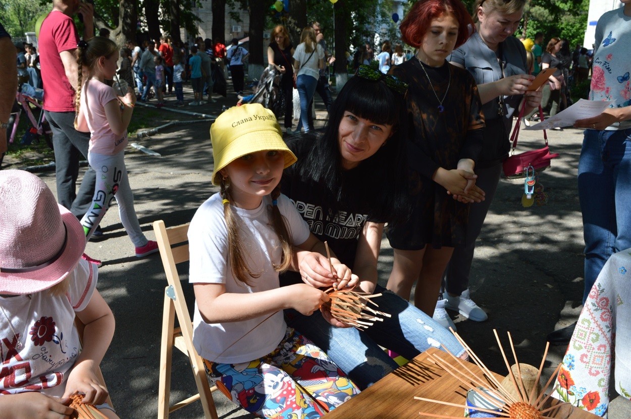 У Парку Шевченка протягом цілого дня діти отримували калейдоскоп вражень. Маленькі творці, яким до вподоби декоративно-ужиткове мистецтво, долучилися до майстер-класів із лозоплетіння та вибійки по тканині.