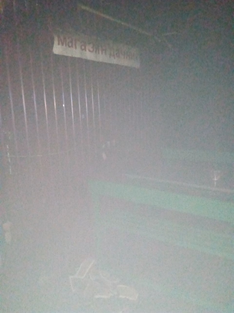 О 01:48 на місце події прибули два відділення 27-ДПРЧ у складі 8 осіб. За результатами розвідки встановили, що горить металевий продуктовий магазин «Дачник» площею 24 кв.м.