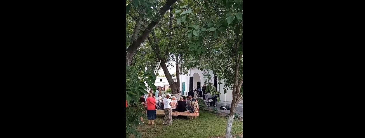 І допоки Мінкульт, НІЕЗ та міська рада вирішують долю історичної споруди древнього Переяслава, допоки свідомі прихожани ухвалюють рішення про перехід храмів до Правослвної Церкви України, власне, поки в Україні йде війна і нашу націю намагається рф просто знщити, на території Михайлівського храму священник промосковської церкви УПЦ "править свій бал" з піснями російського шансону під вигуки "Браво!" місцевих жителів.