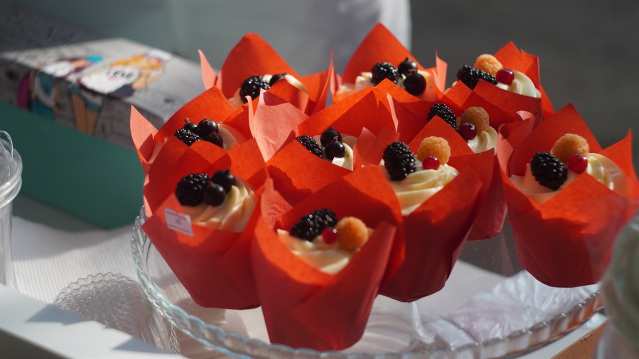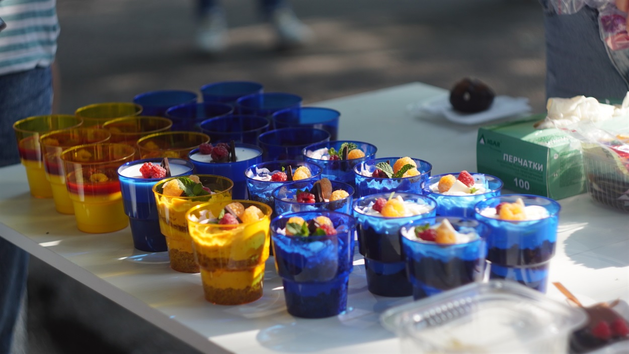 Від одних тільки назв десертів знаної в місті кондитерки Анни Чуй котиться слина: панна-кота з малиною, «три шоколади», шварцвальд із вишнею, «полуниця-лайм» — популярні солодощі Анна подала в зручних стаканчиках із ложечками, щоб дітям було зручно ласувати в перерві між розвагами. Продавала їх по 75 грн. Дорослим припав до смаку персиковий рулет та тістечко з дитинства — «картопля» за 30 грн.