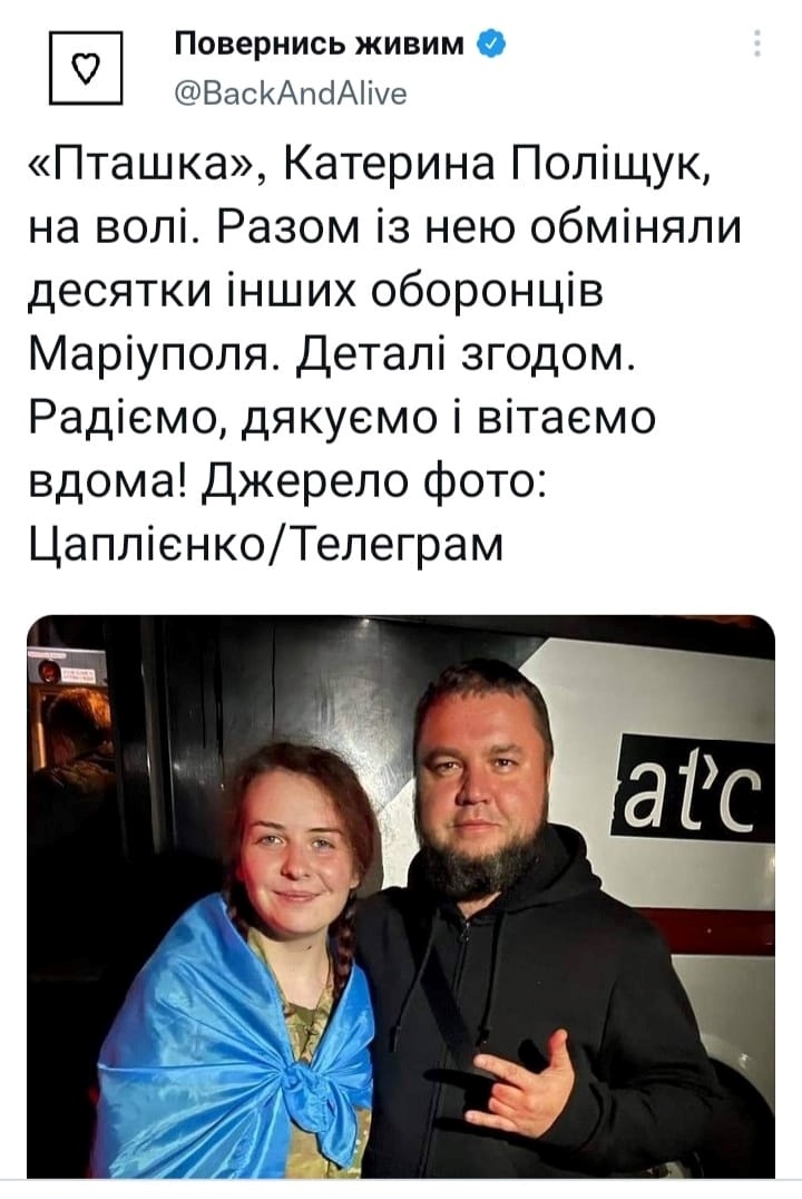 Найбільше з початку великої війни повернення з російського полону в результаті обміну українських захисників Маріуполя відбулося 21 вересня. Всі соцмережі рясніли фото і радісними постами про звільненння, зокрема, відомих командирів і бійців полку «Азов». Наступного дня координаційний штаб із питань поводження з військовополоненими оприлюднив повний список звільнених із полону.