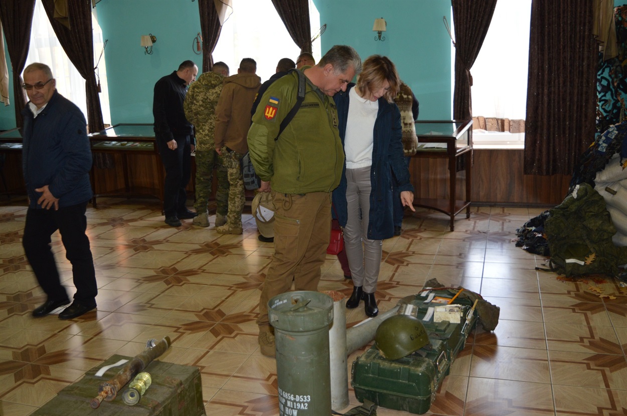 – Насамперед дякуємо нашим захисникам, адже саме завдяки їхній самовідданості ми в далекому тилу можемо відкривати такі виставки, жити практично мирним життям. Центральним експонатом цієї експозиції є великий прапор України, який об’єднує навколо себе всіх українців, незалежно від того чи служать вони на бойових рубежах, чи в тилу працюють на Перемогу.