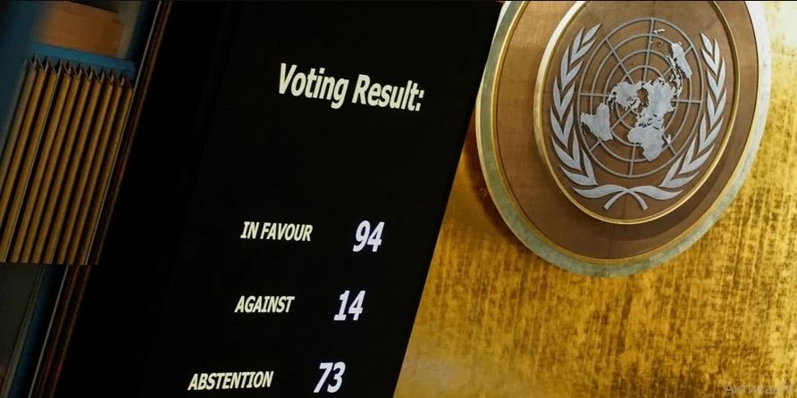"За" проголосували 94 країни, 73 - "утрималися", не голосували - 11. Проти виступили 14 країн: Багамські острови, Білорусь, Центральноафриканська республіка, Китай, Куба, КНДР, Еритрея, Ефіопія, Іран, Малі, Нікарагуа, росія, Сирія, Зимбабве.