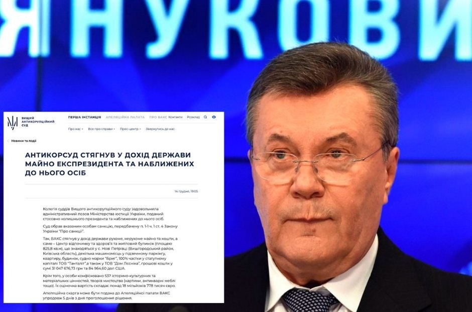 - Все майно Януковича вилучено на користь України