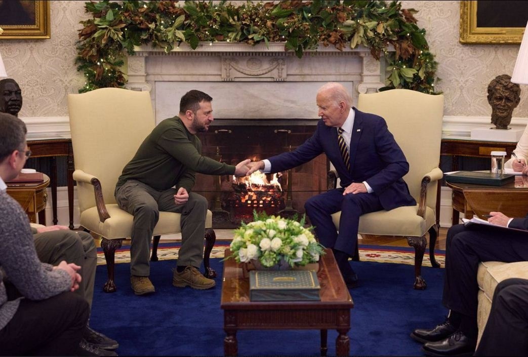 Володимир Зеленський подякував Джо Байдену за підтримку: «Цей візит здійснюється напередодні нового року, який може стати надзвичайно важливим для України. Впевнений, разом можемо досягнути вагомих результатів. За 300 днів війни ми вийшли на рівень реального союзництва, наповненого змістом та підтримко».