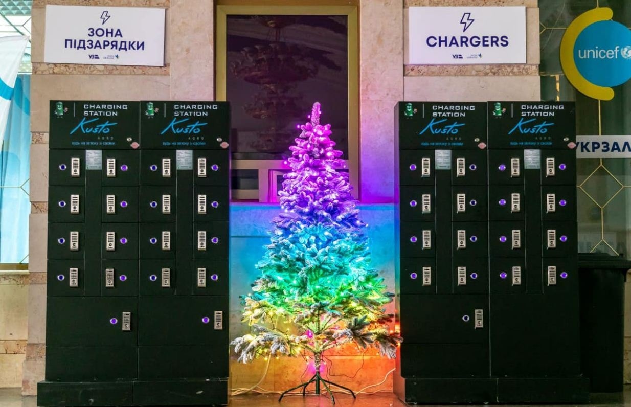 6 грудня Укрзалізниця отримала 100 потужних зарядних станцій для смартфонів, які буде встановлено на вокзалах із найбільшим пасажиропотоком. Їх надано Kusto Group – групою казахстанських підприємців, які активно підтримують гуманітарні проєкти в Україні.