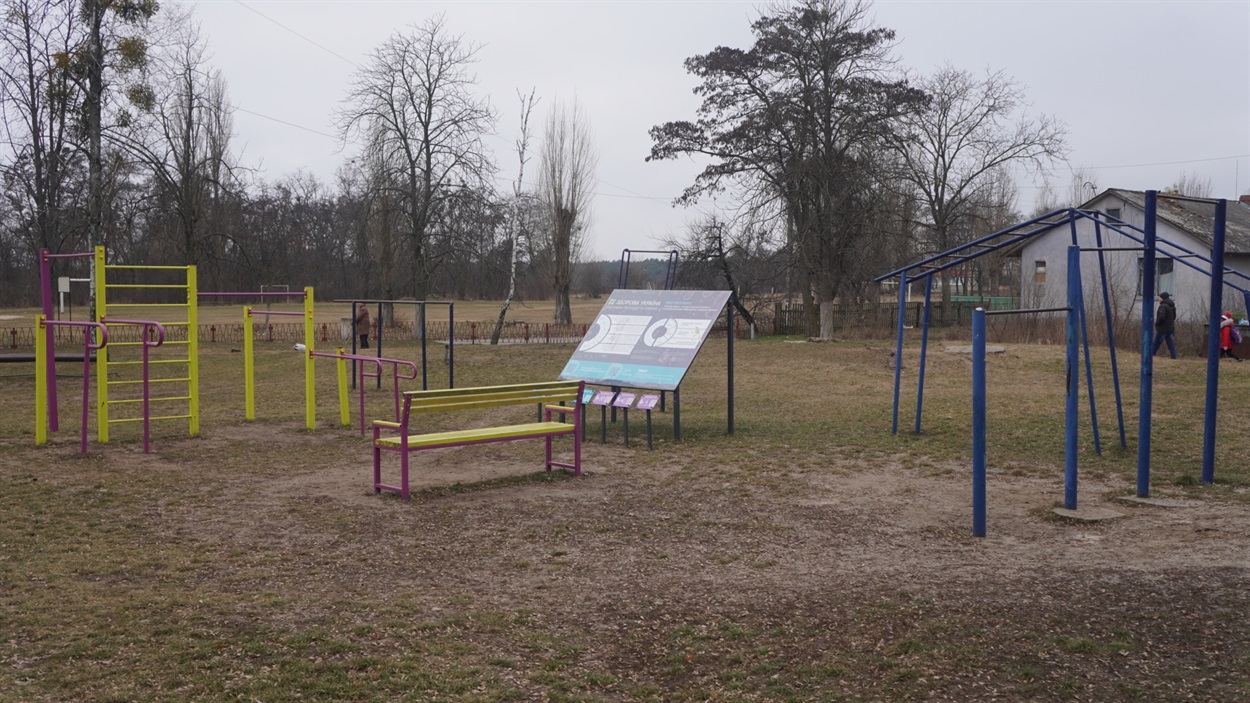 Рік тому на подвір’ї ліцею встановили спортивний майданчик за президентською програмою «Здорова Україна». На ньому є тренажери для пресу, бруси для віджимання, тумба для стрибків, кільця, потрійний турнік, лавки.