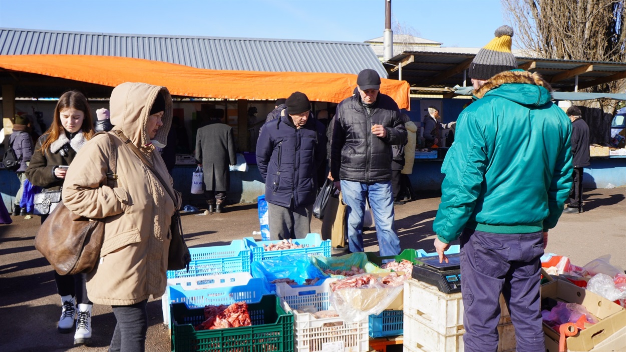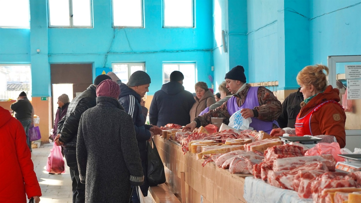 У м’ясному павільйоні, як і минулого базару, всі торгові місця були зайняті. А от покупців о 9-ій годині було небагато. На вході до павільйону один чоловік казав дружині: «М’яса сьогодні багато, тож прийду після дванадцятої та й куплю дешевше».