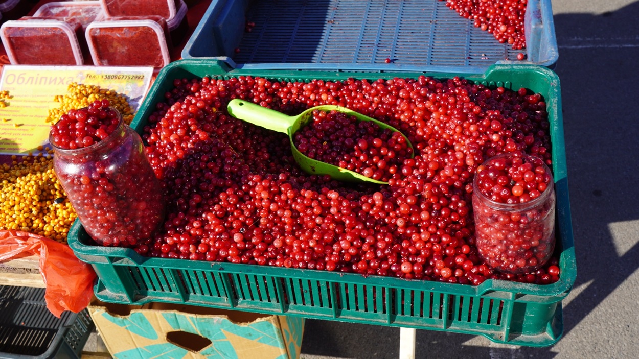 Журавлина продавалась як на кілограми, так і на баночки. Кілограм коштував 130 гривень, літрова баночка з гіркою – 100 гривень, а півлітрова – 50 грн.