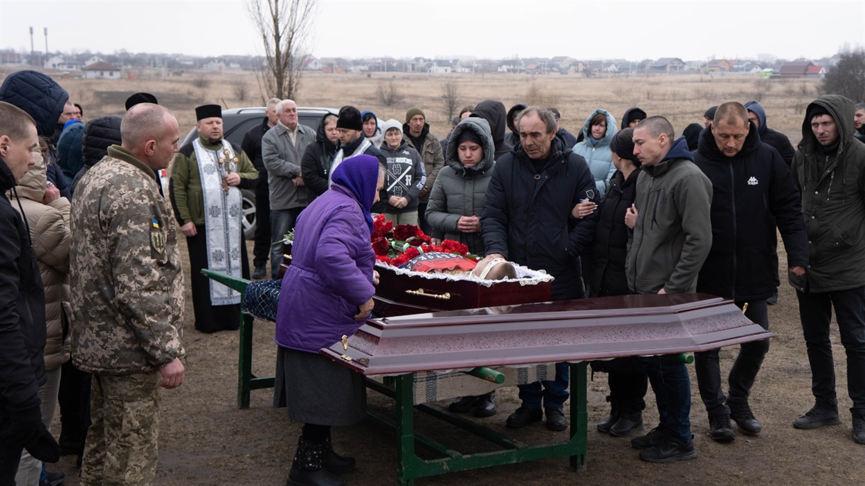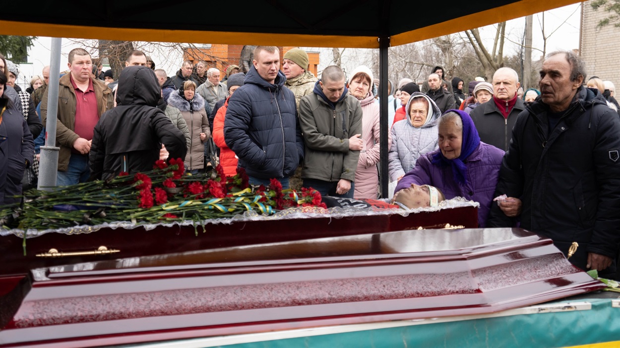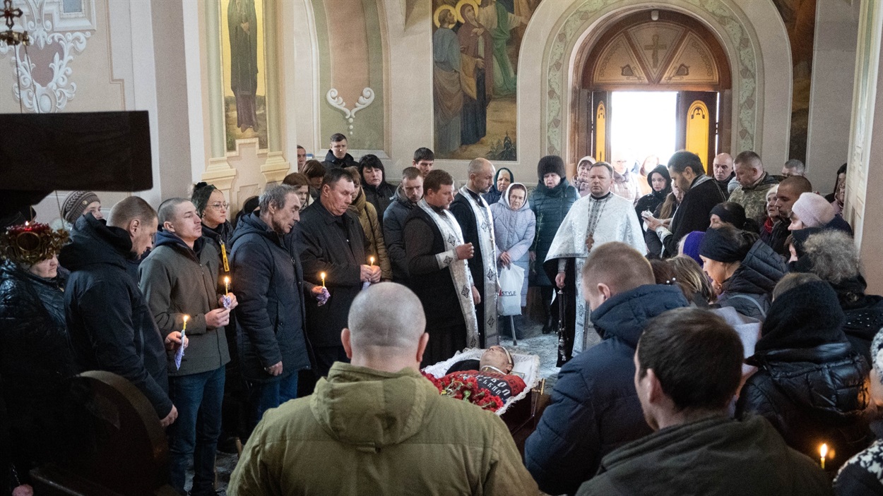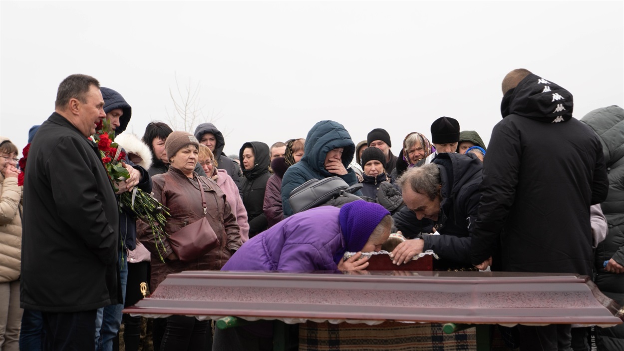 Товариш Віктор: – Я із Русланом однолітка, поки були молодшими, то разом ходили гуляти. Останній раз живим я його бачив, мабуть, рік тому, коли він приїздив додому на ротацію. Сьогодні із друзями прийшов провести його в останню путь.