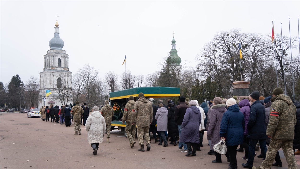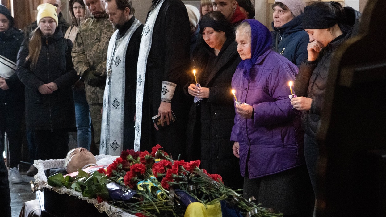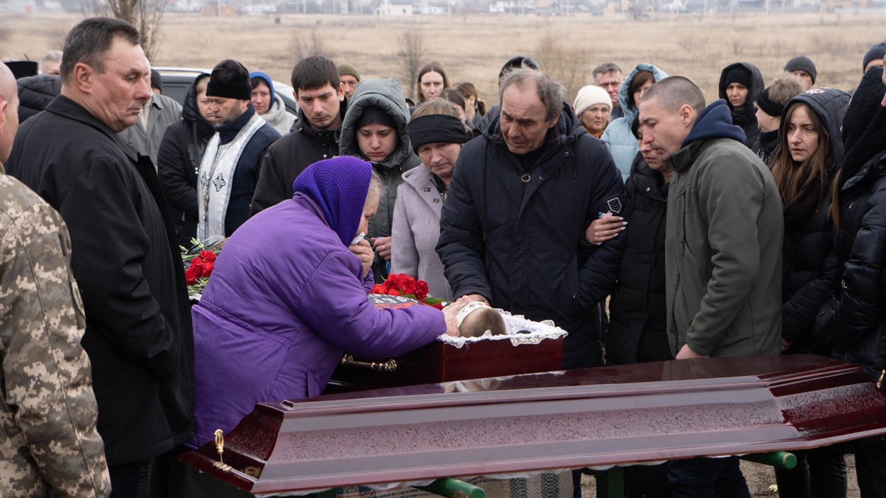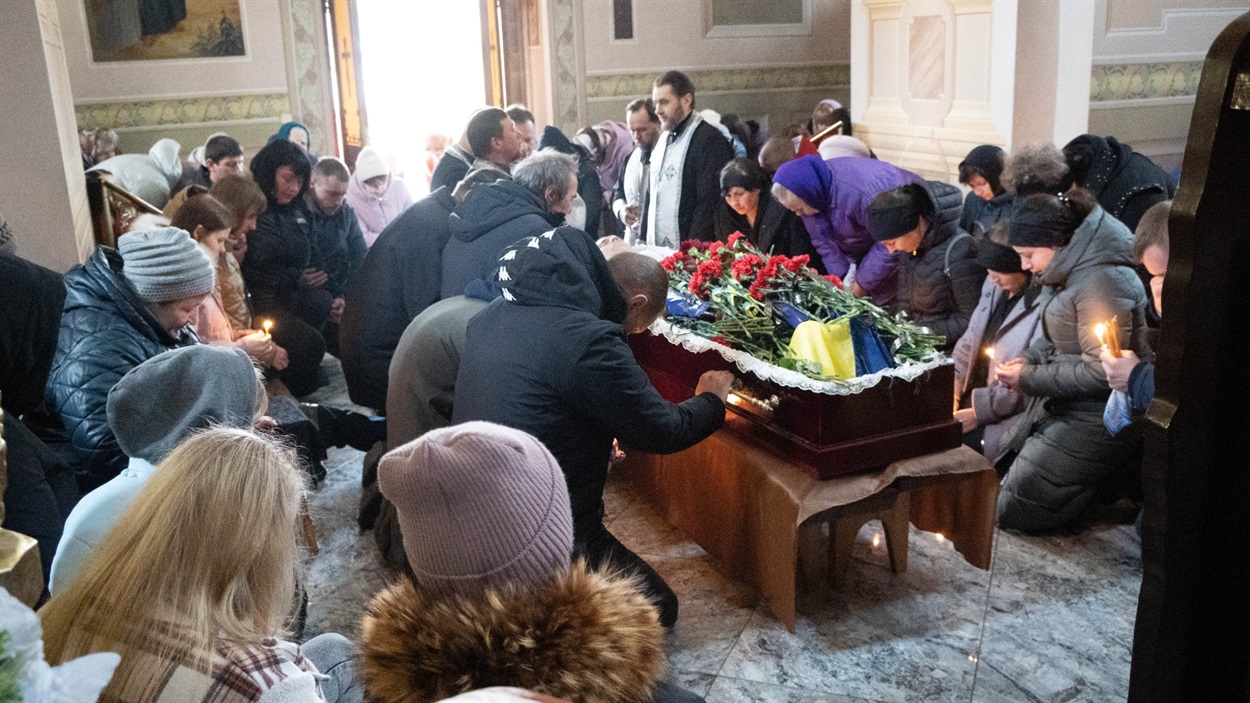 Товариш Віктор: – Я із Русланом однолітка, поки були молодшими, то разом ходили гуляти. Останній раз живим я його бачив, мабуть, рік тому, коли він приїздив додому на ротацію. Сьогодні із друзями прийшов провести його в останню путь.
