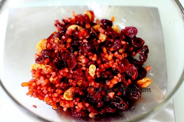 1) За добу до приготування усі інгредієнти слід залишити при кімнатній температурі. Сухофрукти залити окропом, залишити на хвилину і відцідити. Залити алкоголем і залишити на 8 годин. Відцідити, зберігаючи рідину.