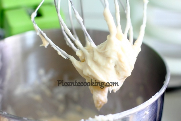 3) Дріжджі розвести в решті молока, додати до заварної маси (після охолодження). Перемішати і залишити на 20 хвилин.