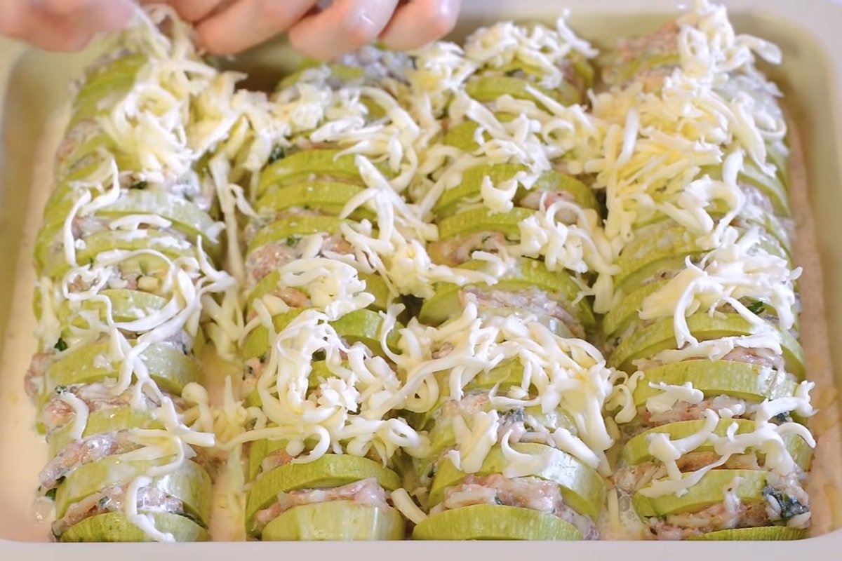 - Залийте кабачки приготованим соусом. Сир натріть і посипте ним зверху овочі.
