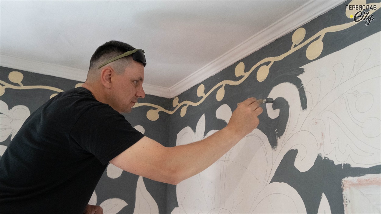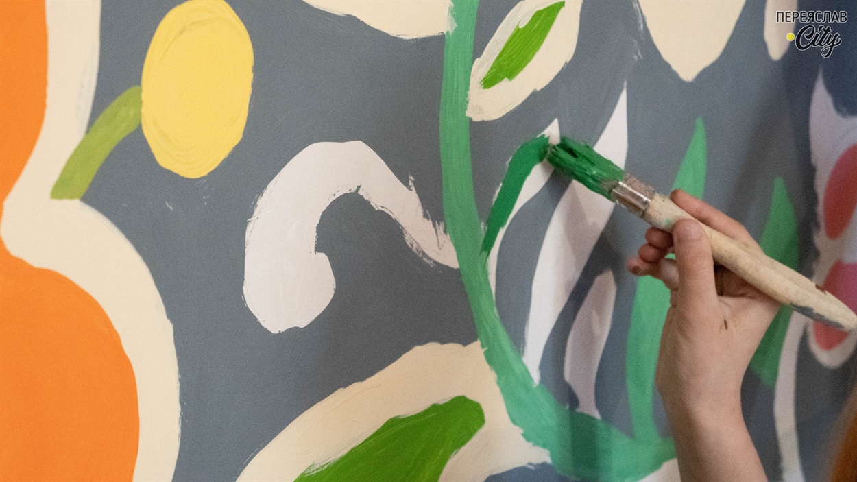 А 2 червня Микола Богатир скликав всіх охочих доєднатися до найприємнішої та найкреативнішої частини облаштування музею – розпису стін в одній з кімнат. Ескізи майбутнього стінопису створили керівниця творчого проєкту, місцева художниця з Переяславського центру культури і мистецтв Євгенія Демченко: