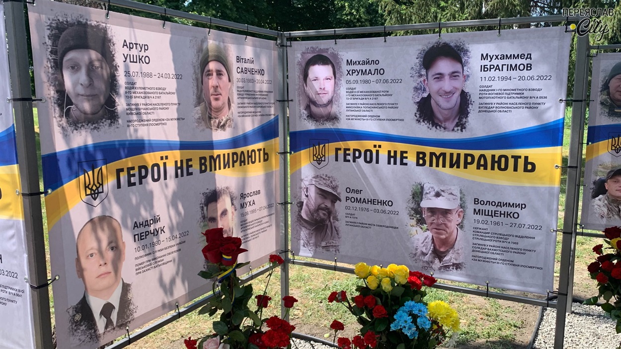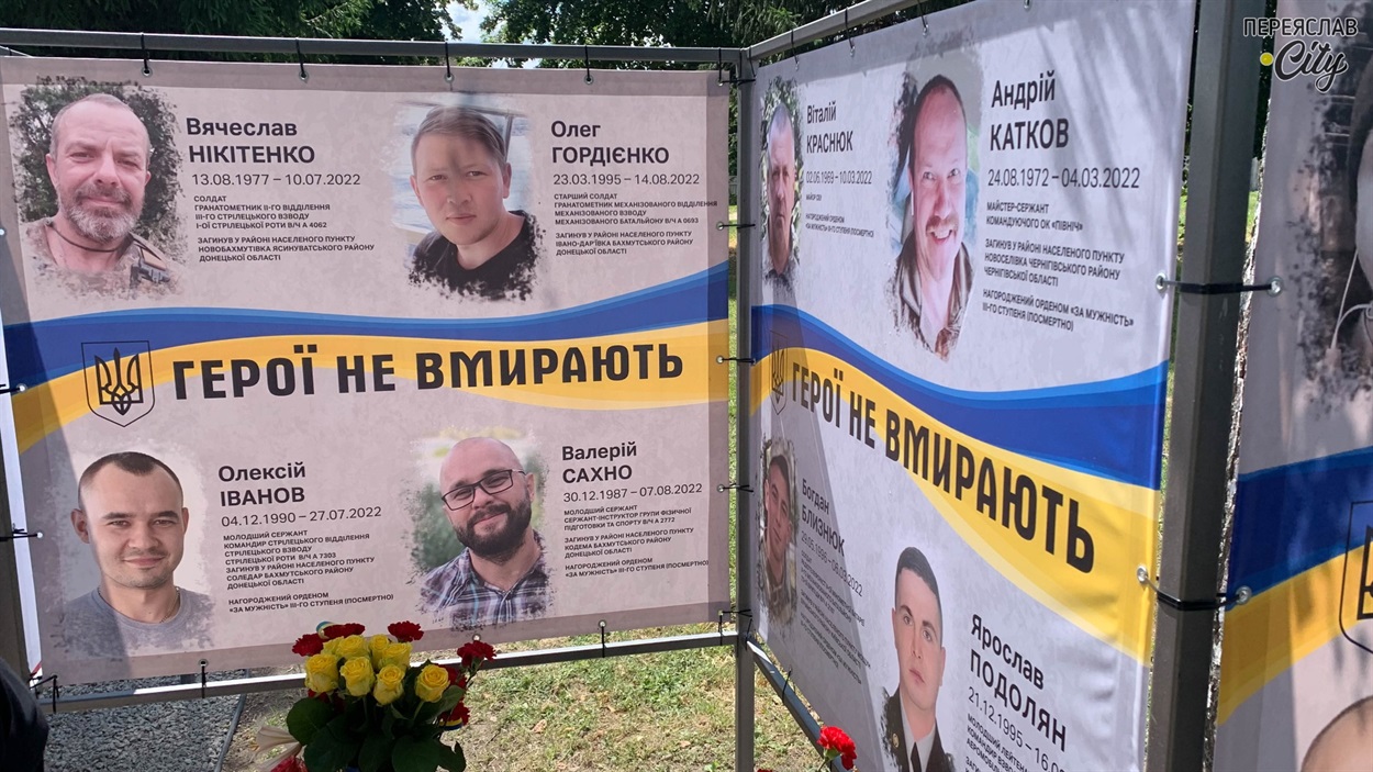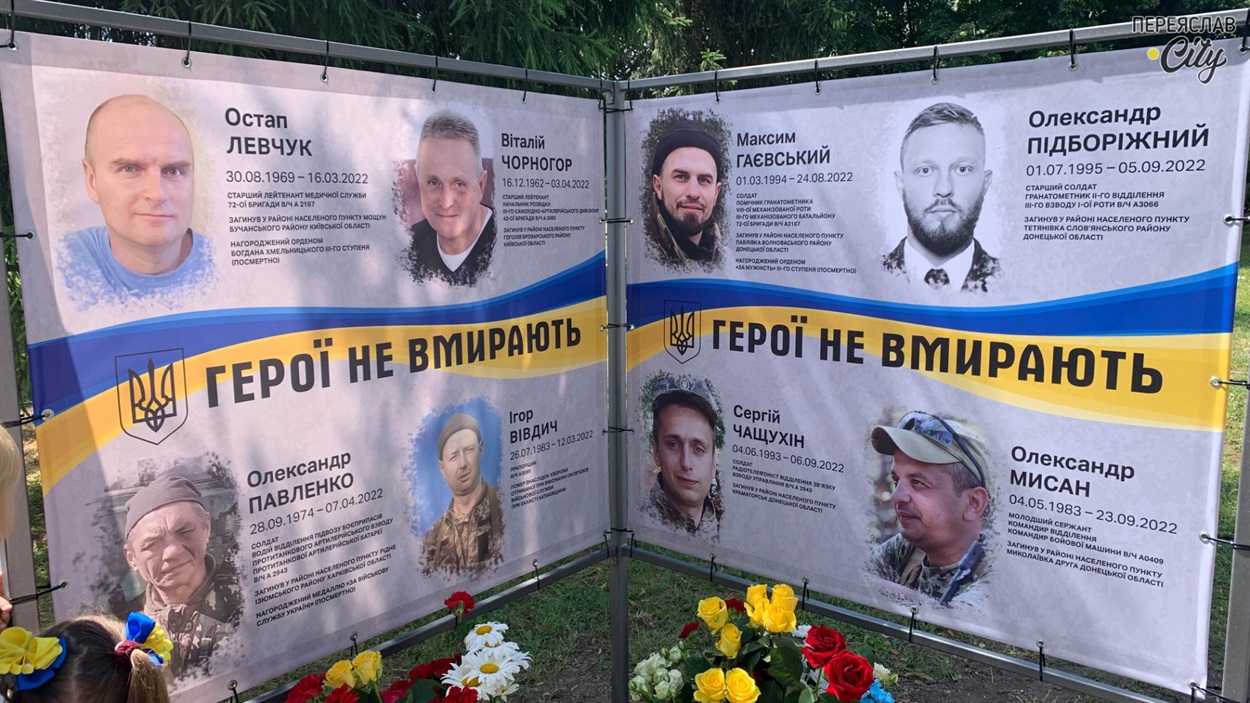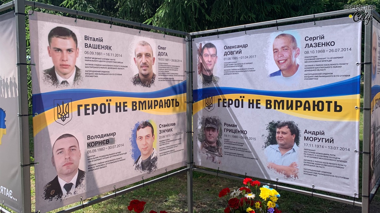 На Алеї Героїв — портрети 65 військових, які віддали життя за Україну протягом дев'яти років війни. Всі вони народилися, жили або поховані на Переяславщині. Меморіал встановили навпроти храму Воскресіння Христового, в якому відспівували та проводжали в останню дорогу більшість із них. Це біля пам'ятника загиблим учасникам АТО на розі вулиць Богдана Хмельницького та Гімназійної. Зранку кожен перехожий, йдучи центром міста, на мить зупиняв погляд на світлинах героїв-земляків, зазирав у вічі, запам'ятовував їхні імена.