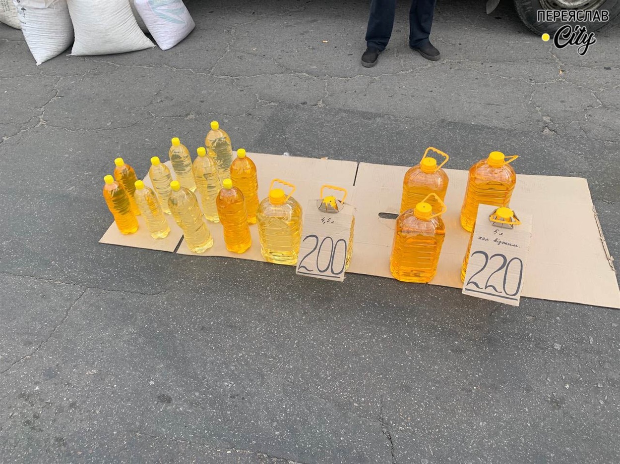 Олія цієї неділі коштувала 200 грн за 5 л. Але багато де така ж ціна була за дещо менший по об'єму бутиль – 4,5 л. У цих продавців 5 л олії коштували 220 гривень.