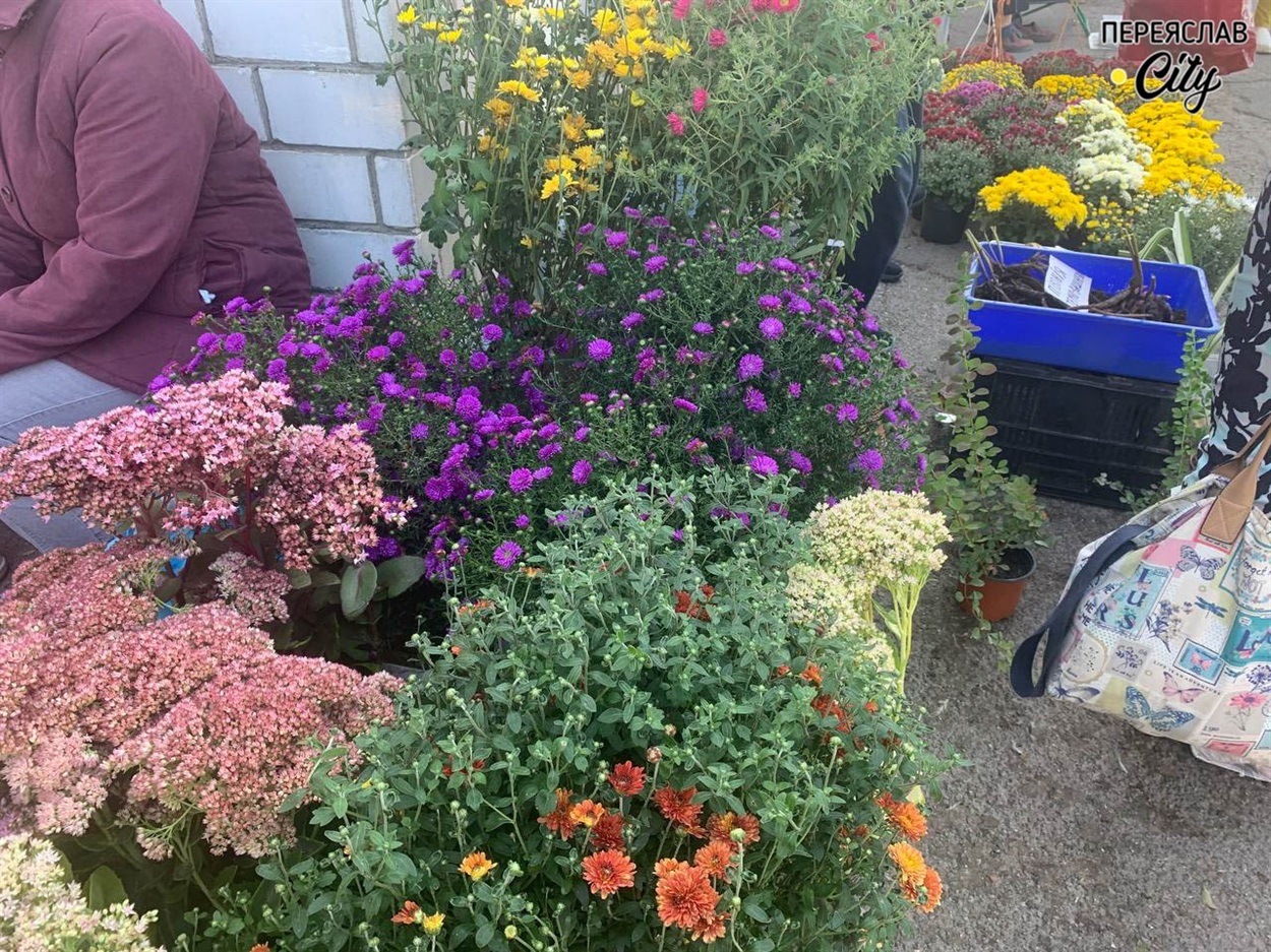 У багатьох куточках на переяславському ринку можна було помилуватися різноманіттям осінніх квітів. Саджанців цієї неділі було багато. Як розповіла продавчиня Світлана, квіти можна купити до 100 гривень за один саджанець.