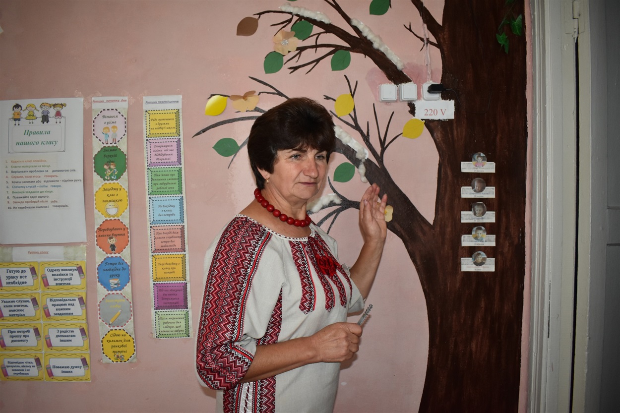На дверях одного з них запрошення: «Заходьте до нас із радістю!». Це найперший клас, який створювали за програмою НУШ. Учителька з батьками зробили самі ремонт, а меблі і деяке обладнання, навіть мультимедійну дошку отримали за державною програмою. Так оновлювали класи чотири роки поспіль. П’ятий припав на війну.