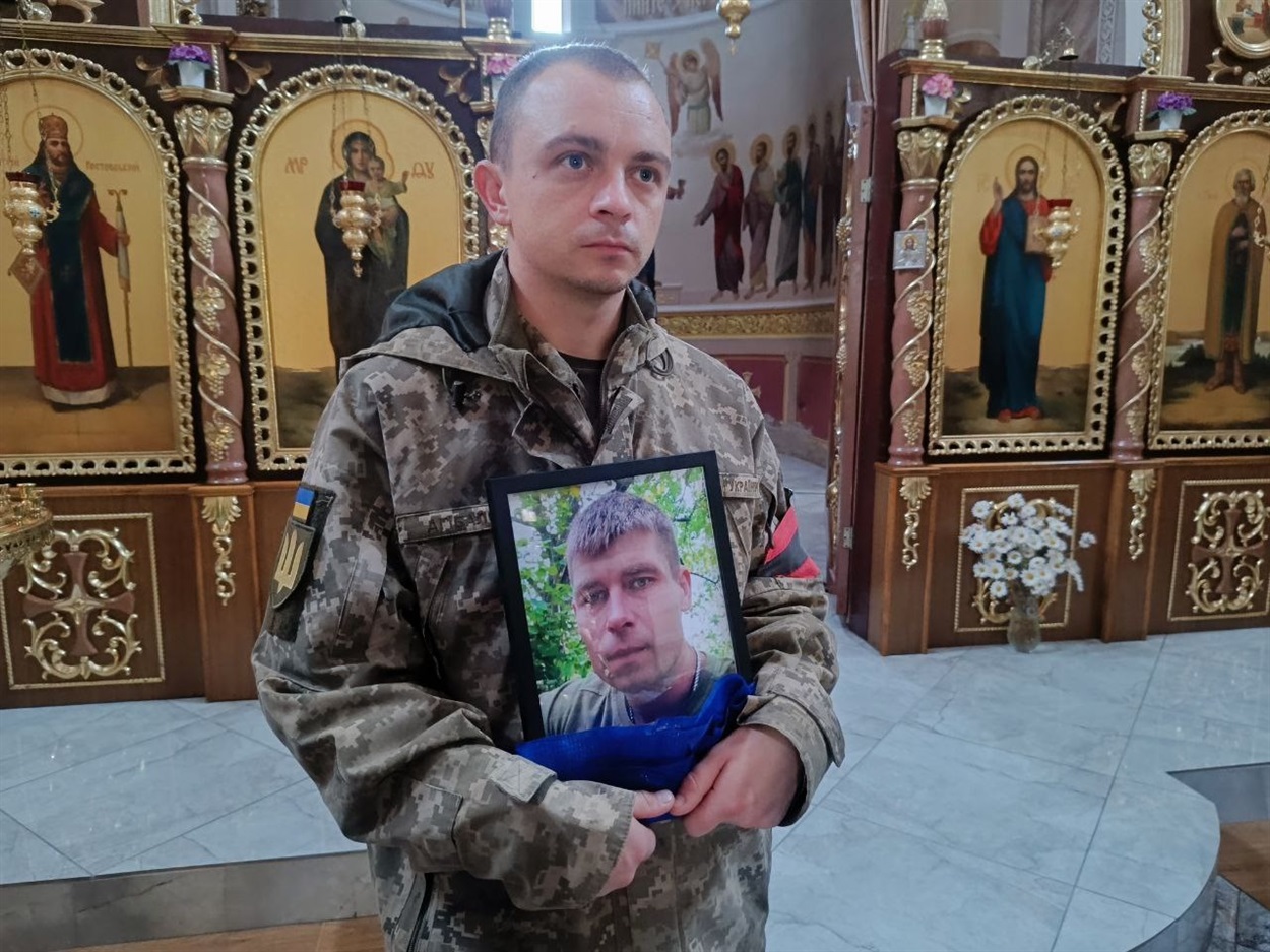 …До храму під’їжджає траурний кортеж. Почесна варта військових, вінки в жовто-блакитних кольорах, червоні троянди і гвоздики на кришці домовини. Війна не дозволила найдорожчим людям Сергія навіть востаннє побачити його лице, навіки закриті очі. Війна зжерла його тіло…