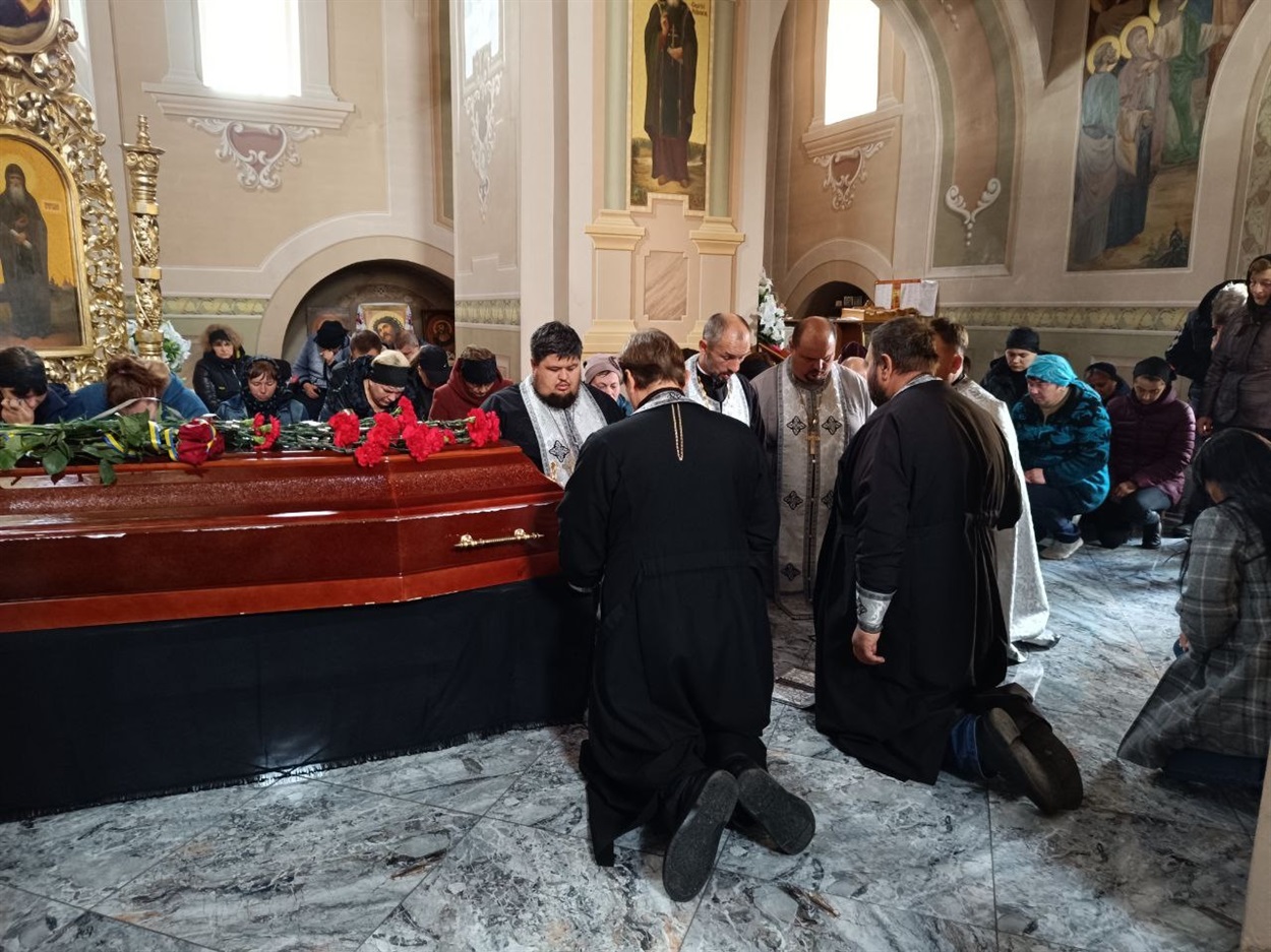 Душу Героя відспівали священники. Молитва українською, ритуальна після "Пливе кача..." , проповідь о. Івана Бобітка завершується цитуванням Кобзаря «Наша дума, наша пісня не вмре, не загине, он де, люде, наша слава, Слава України…». За цю славу, за цей народ, за свою державу Сергій Стратієнко заплатив своїм єдиним життям…
