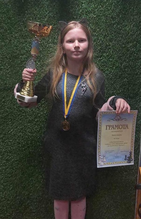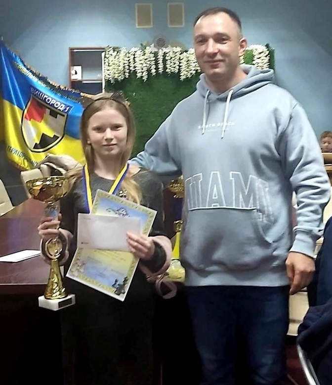 – Непростими насправді для наших вихованців є заняття упродовж цього часу: спочатку епідемія ковіду, тепер – війна. Та незважаючи на це, Ангеліна регулярно відвідує уроки з шахів, а також завжди бере активну участь у змаганнях різних рівнів. У своєму арсеналі здобутків моя вихованка вже має 20 медалей і 2 кубки! Один із них, до речі, вона виборола нещодавно у Вишгороді, – наголосив Василь Васильович.