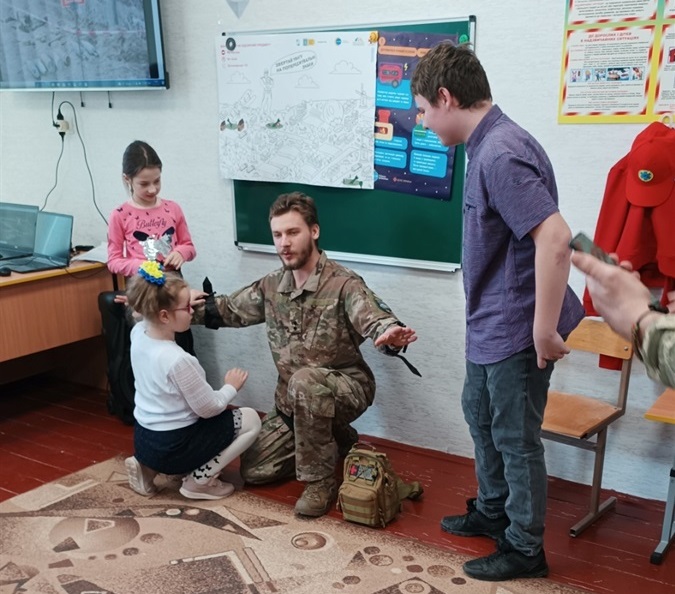 Працівники ДСНС Сергій Лисенко та Денис Порохня ознайомили учнів із правилами пожежної безпеки та зробили відповідну демонстрацію. Своєю чергою, військовий розповів дітям про вибухонебезпечні предмети, мінну безпеку та правила накладання турнікету. Діти отримали багато важливих знань. А це і є головною метою проєкту.