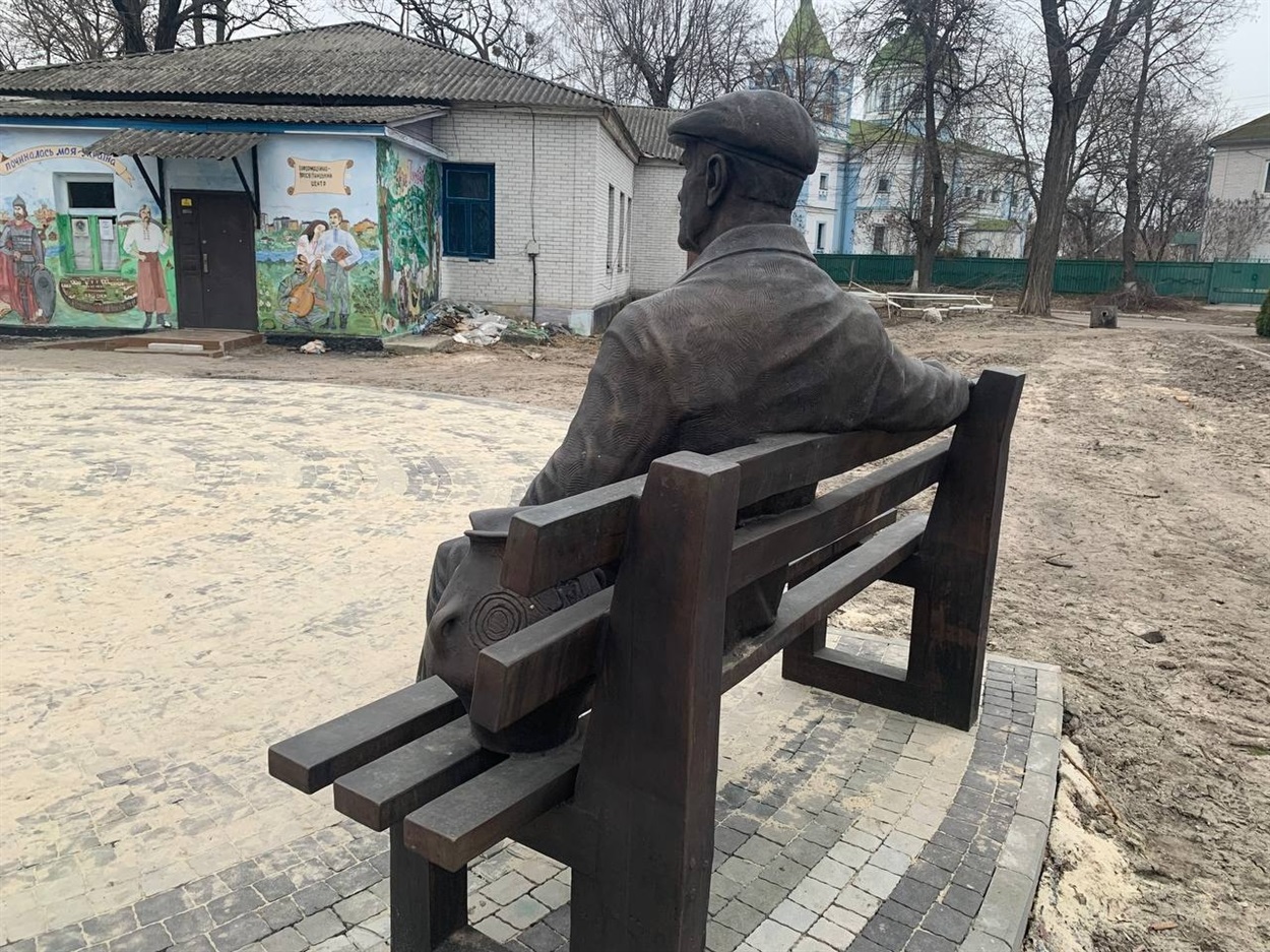 А поки за тим дійством споглядатиме через дорогу на лавці Михайло Сікорський. У бронзі. У неприглядному місці. Без квітів. Поки що. Тому, мабуть, і в звітних роликах у кадр не потрапляє...