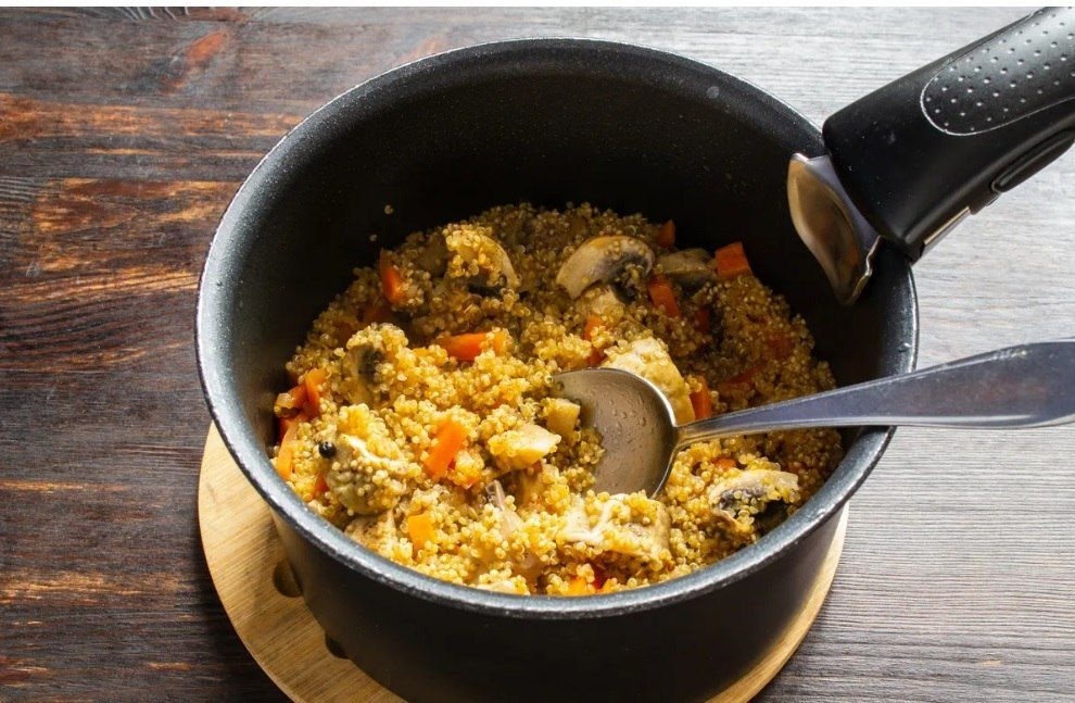 Білу кіноа варто готувати на слабкому вогні від 11 до 15 хвилин після закипання, не забуваючи помішувати та додаючи сіль та спеції за смаком.