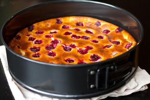 - До жовтків додати сир, борошно, перемішану з розпушувачем, кіноа, вишню і мигдаль. Акуратно вмішати лопаткою збиті білки.