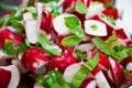 - Червона: має трохи більш хрустку текстуру та землистий смак. Ідеально підходить для салатів.