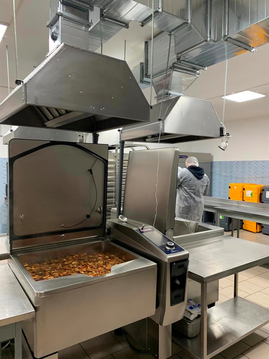 Фірма, яка обладнала наші кухні, готує гарячі шкільні сніданки та обіди на основі чотиритижневого меню відповідно до вимог постанови Уряду №305 від 24 березня 2021 року, а також відповідає за довіз страв до всіх шкіл.