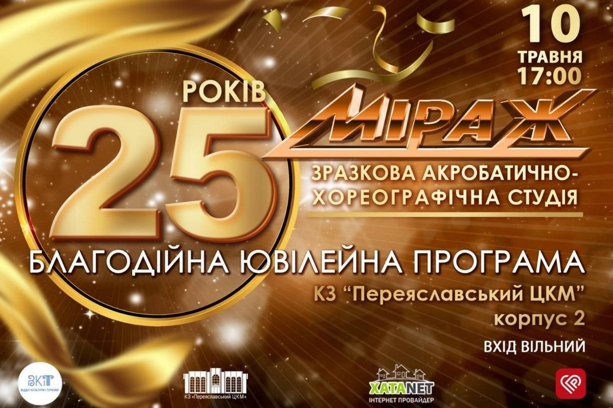 Станьте свідком благодійної ювілейної програми від зразково-акробатично хореографічної студії "Міраж", яка відзначає 25 років своєї діяльності.