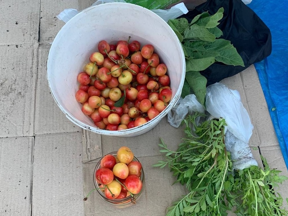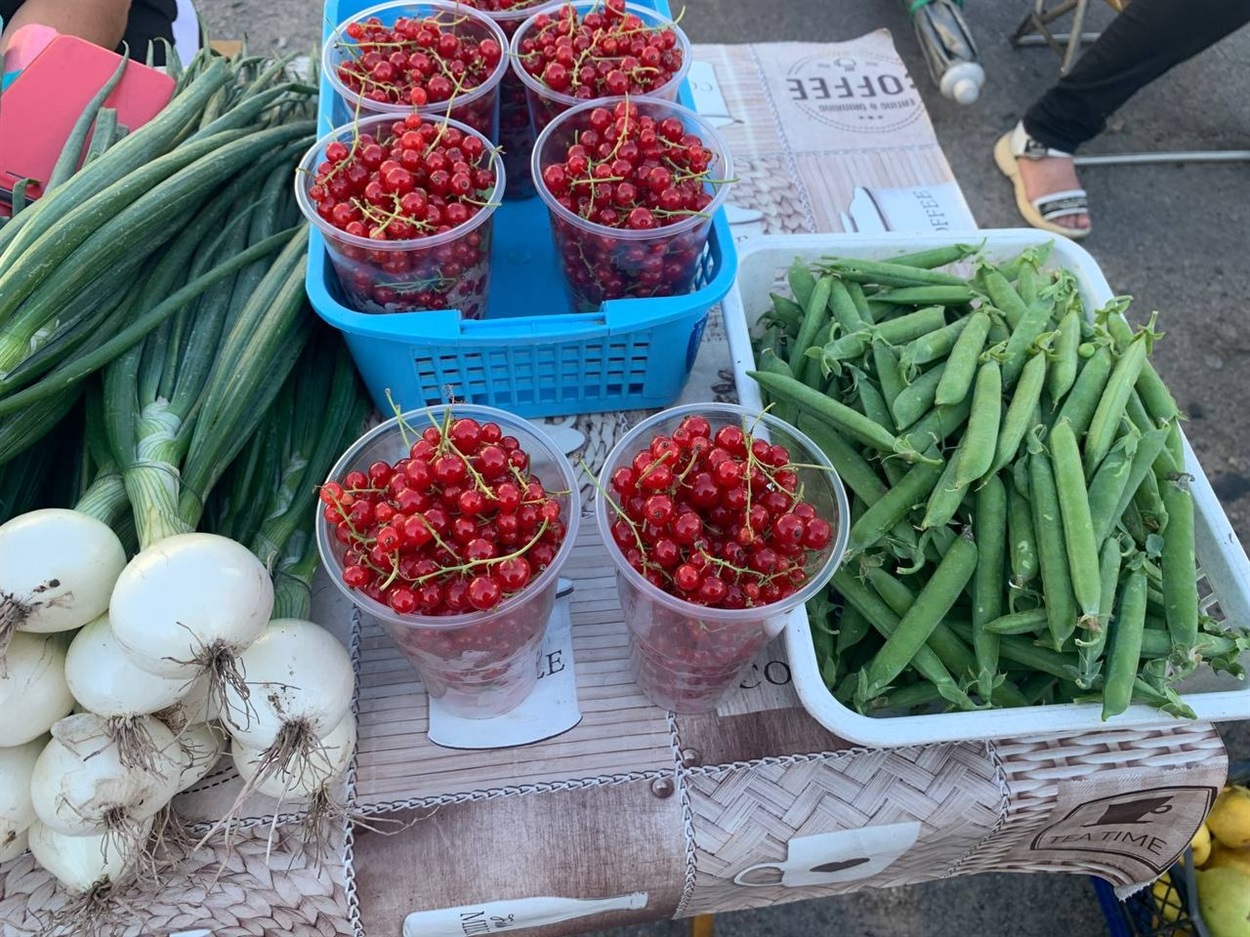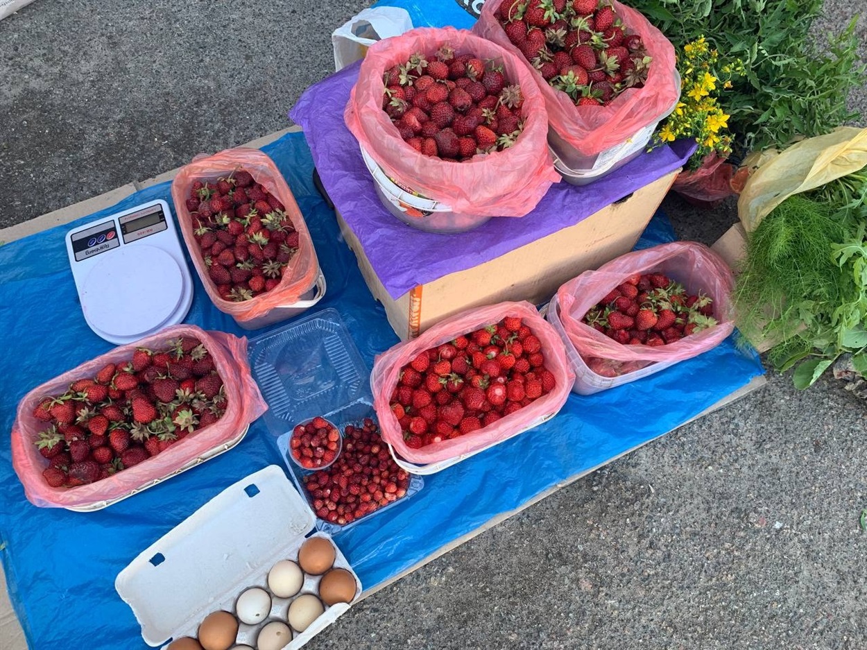 Серед фруктів найбільше було торішніх яблук, свіжої полуниці та черешень. Можна вже було купити й порічки. Все домашнє.