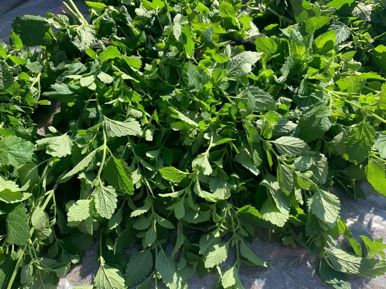Поруч у продавчині є ще й лущений горох. Жінка правила 15 грн за стакан. По сусідству можна було придбати і мелісу по 10 грн за пучок. Господиня теж із Гайшина.