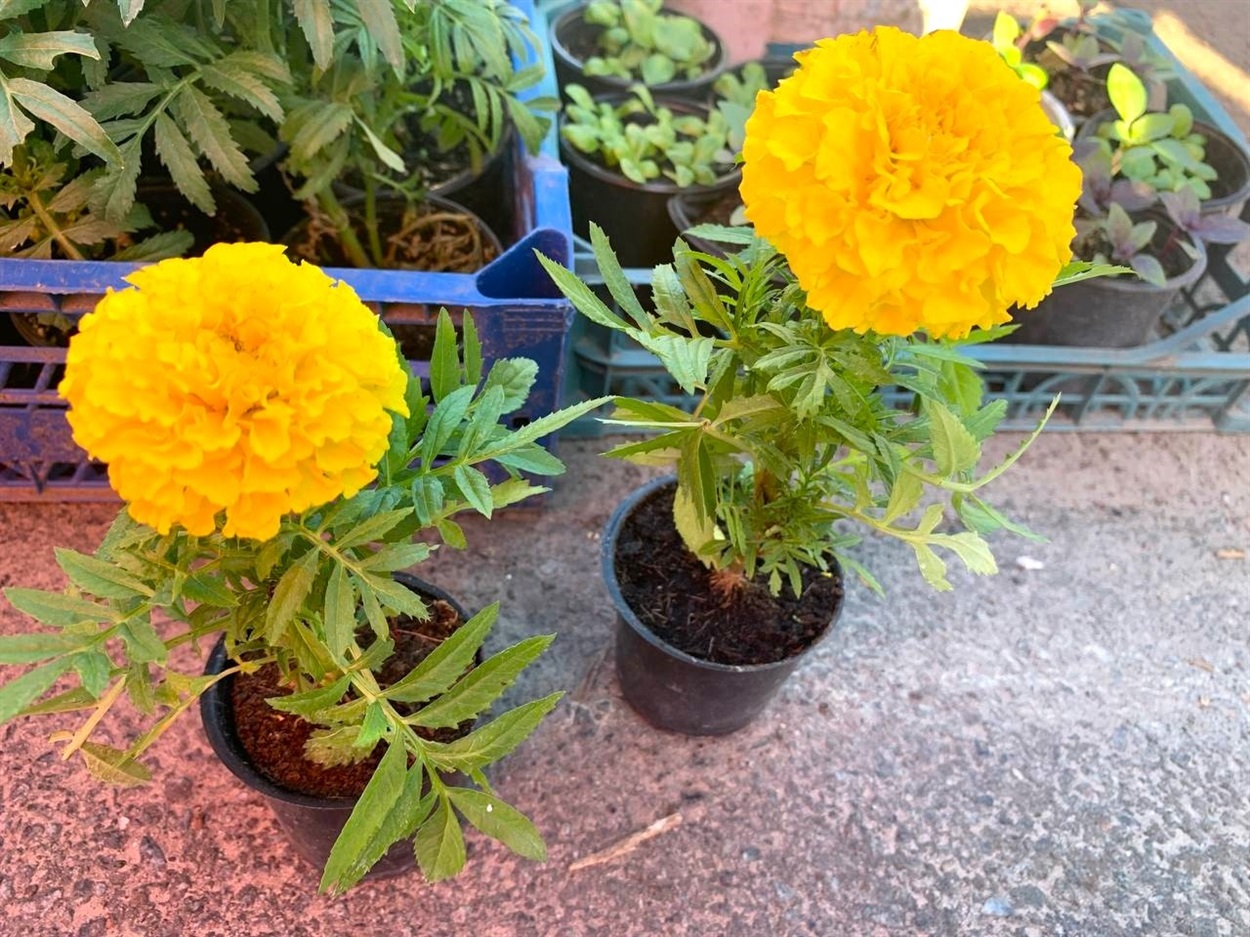 - чорнобривці квітуючі – 25 грн/шт;