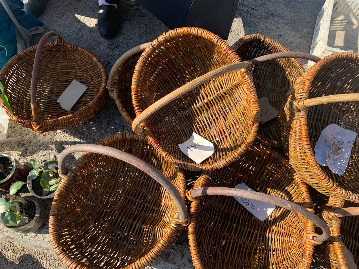 Переяславка Світлана Лихота продавала сьогодні плетені з лози кошики. Ціни залежать від розміру кошика – від 250 грн. А ще чоловік жінки плете брилі з соломи (овес). Вона правила від 250 грн за один такий: