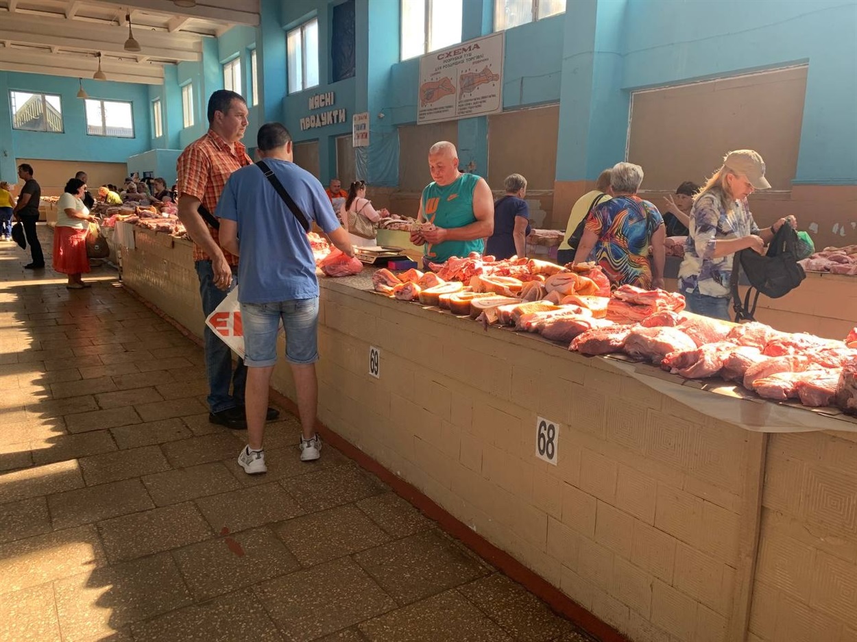 Чимало торгових місць у м'ясному павільйоні сьогодні були вільними, а от минулої неділі, як жартували продавці, бракувало людей.