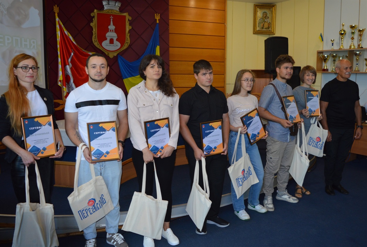 Крім цього, сьогодні семеро молодих жителів громади отримали свої сертифікати за успішне проходження стажування у виконавчих органах Переяславської міської ради з 1 липня по 12 серпня: